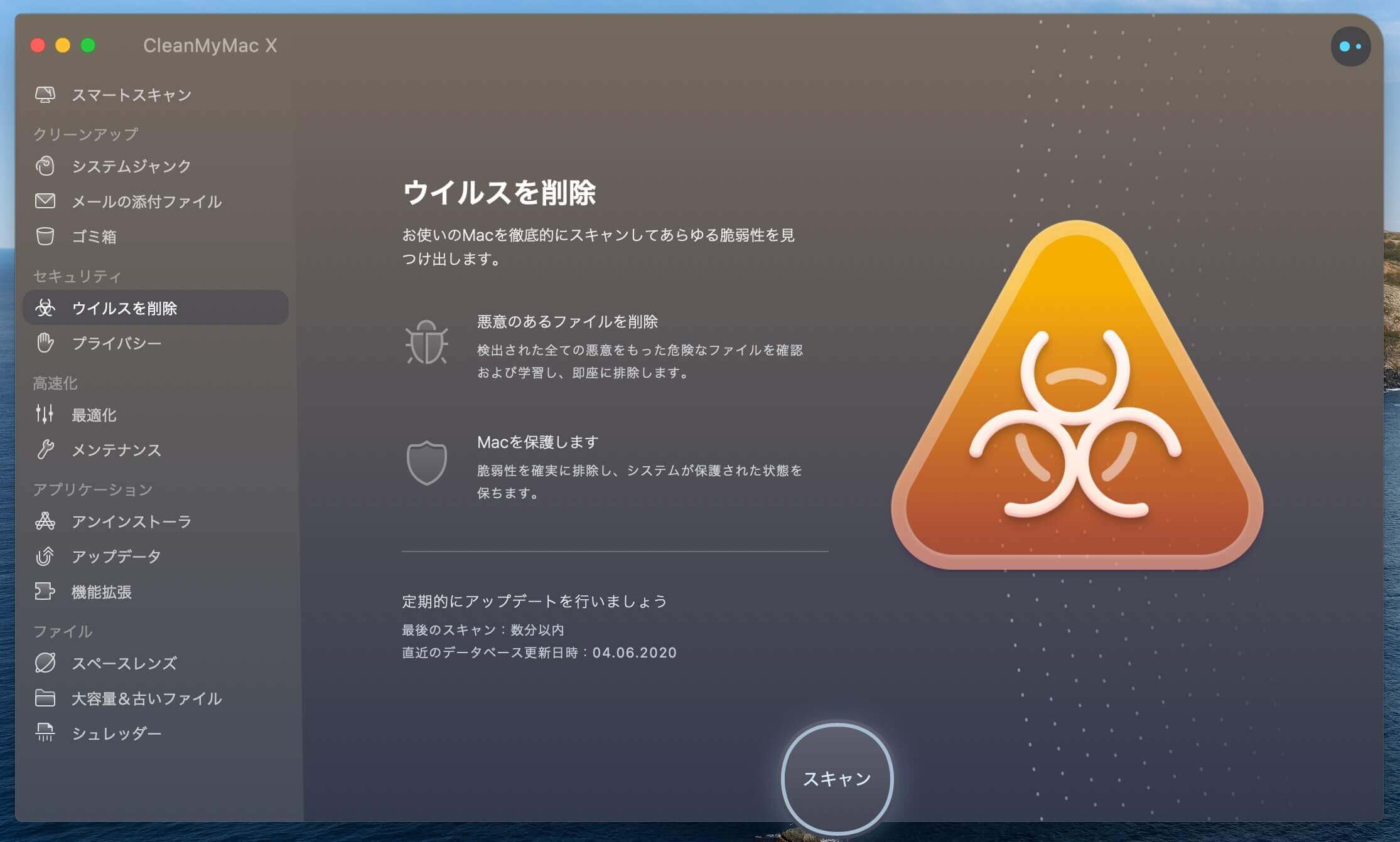 CleanMyMacはMacのクリーン、高速状態を保てます。それから、Macを守り、大きな隠れたファイルやアンインストールされたアプリなどを見つけて取り除いたり、ブラウザーとチャットの履歴をクリアしたり、ハングアップされたアプリとCPUの使用率の高いプログラムを終了させたりします。